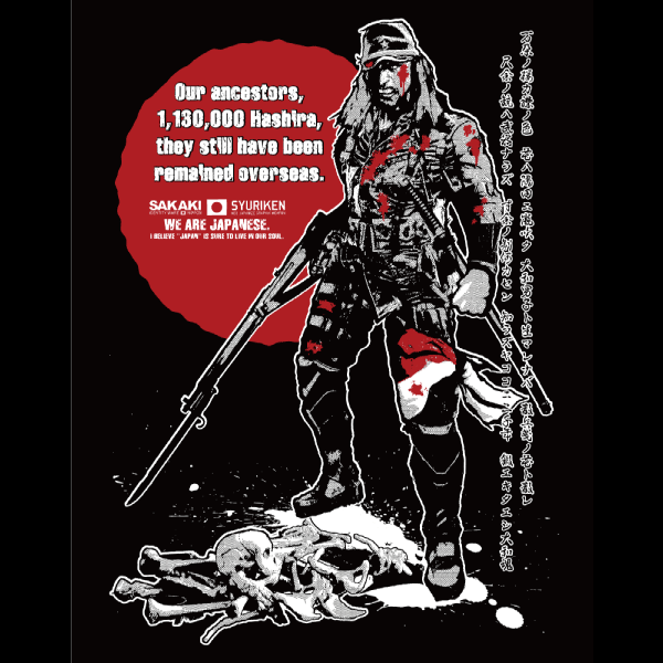 負傷しても日本を守る為に、戦い続けた兵士をイメージしてデザインしたTシャツ。